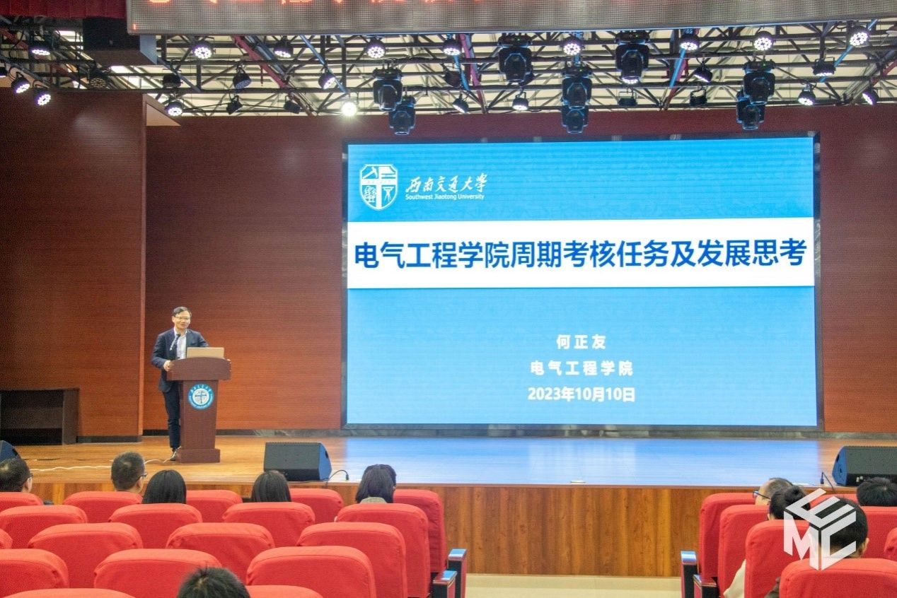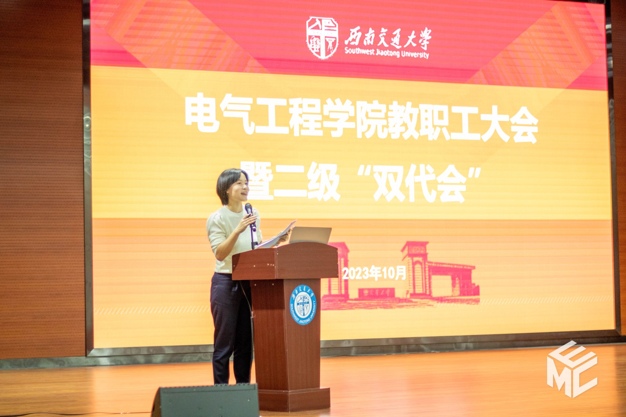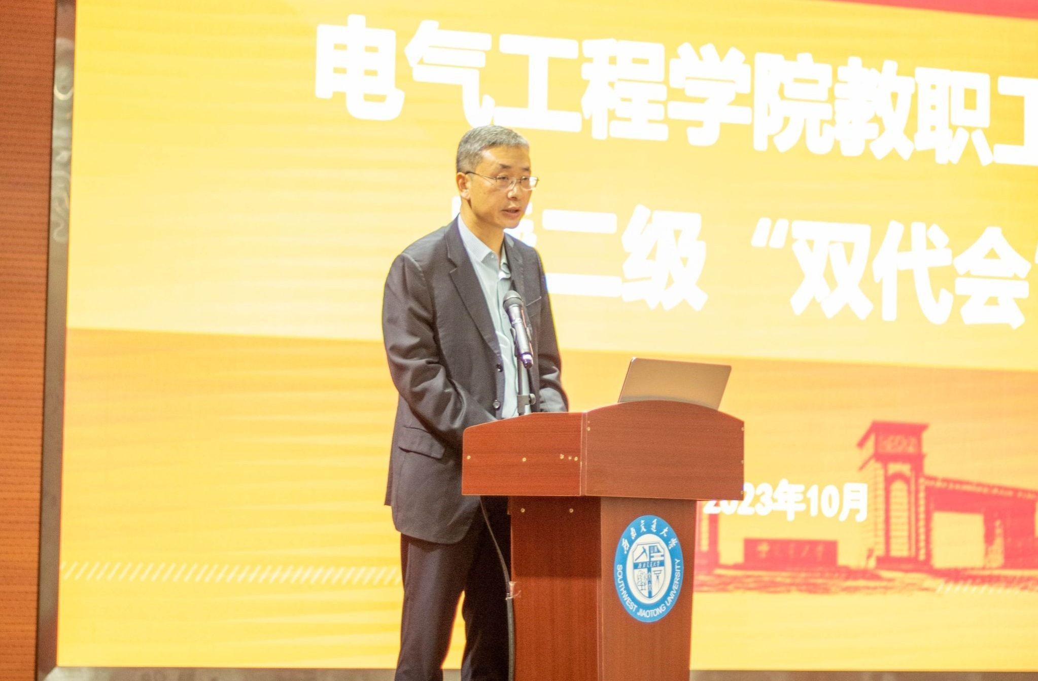 2023年10月10日下午,肉漫 2023年“双代会”在犀浦校区一食堂三楼顺利召开。院长何正友,党委书记王斌,党委副书记谢力,党委副书记、工会主席王轶,副院长何晓琼、解绍锋、陈民武、胡海涛、刘志刚参加会议。因院情院务公开需要,本次“双代会”扩大至全院教职工范围,肉漫 “双大会”代表与全体教职工参加会议。会议由党委王斌书记主持。