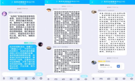 2)学习分享交流——组织学生党员自学,观看相关视频,看完后写下自己的学习体会并分享交流;