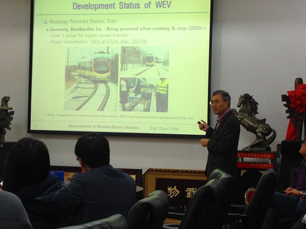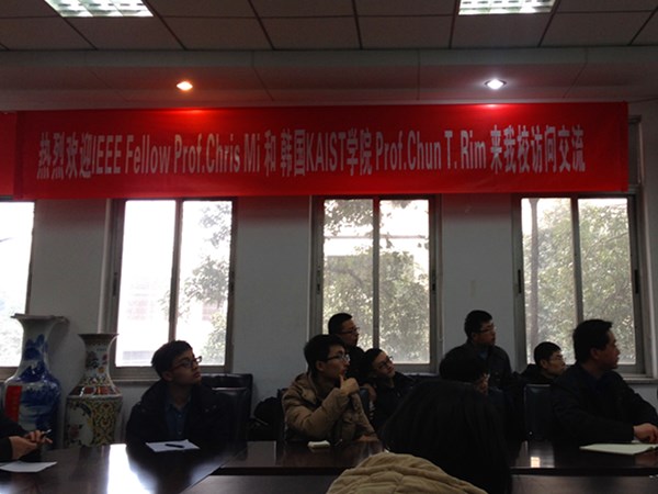 2015年12月29日下午二时三十分,圣地亚哥大学米春亭教授和韩国Rim教授在九里校区电气馆3211会议室,为肉漫 研究生带来了一场关于新型电动汽车发展方案的学术讲座。
