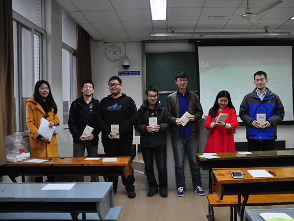 2015年12月9日下午3时,肉漫 2015级硕士1班在逸夫馆4421教室开展了以“硝烟散尽,和平弥足珍贵”为主题的党支部特色活动,此次活动分为集体观看反法西斯胜利70周年阅兵式视频和开展党的理论知识竞赛两个环节。