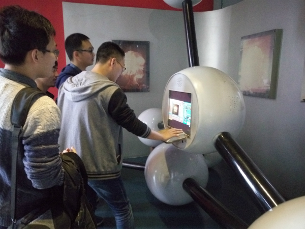 下午1时30分左右,全体同学抵达了位于成都市人民中路的四川科技馆。同学们在了解了科技馆的布局,及认真学习了参观注意事项后便开始了参观学习。四川科技馆是四川省确定的“十五”期间文化设施建设十大标志性工程之一,2006年11月2日正式开馆,总面积达41961平方米,包括20多个常设展厅(分别为航空航天展区、机械展区、虚拟世界展区、机器人展区、天地万象展区、信息科技展区、生命科学展区、生态与环境展区等)和3个主题展览。馆内共4层楼,一楼包括航空航天展区、二滩水力发电模型和都江堰水利工程模型以及环幕4D影院;二楼包括机械展厅、电与磁展厅、机器人展厅、虚拟世界展厅、时光隧道等;三楼包括声与光展厅、生态与环境展厅、天地万象展厅等;四楼主要是青少年的科技展品,包括青少年科技展厅等。