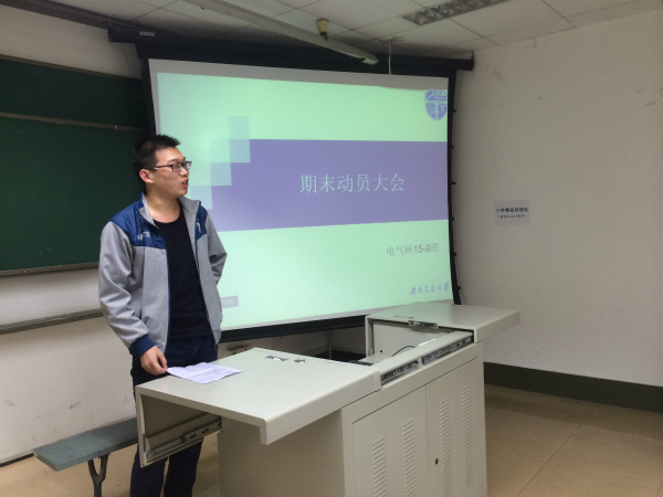 2015年11月30日晚7时,电气15级硕士9班在逸夫馆4304B开展班风建设之“期末考试动员大会”。此次大会旨在指导班级成员掌握正确复习方法,了解一些应试技巧,营造良好的学习氛围,加强班级学风建设。