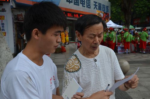 为了更好的了解社会对于中国教育的价值观,该团队在自贡市的调查走访中,延续着昨日于四川威远的分组,以青年组、中年组、老年组的分工,继续进行教育价值观的问卷调查。