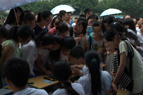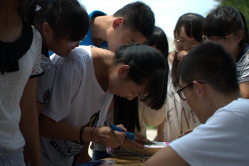 2013年7月20日上午8点40分,肉漫 暑期“三下乡”社会实践团队在四川省威远县威远中学多功能厅给在校高二升高三的学生开展了一个主题为“大学.梦”的主题讲座。讲座主要向高中的同学介绍了美好的大学生活,给同学们做了一些高考心理辅导,旨在增强同学们对大学生活的渴望,激发同学们的学习兴趣。讲座的同时发放调查问卷,了解当代高中生的教育价值观。接着,中午12点,该社会实践团队在威远中学校内摆摊设点向在校的高中生展示了一些科创作品,现场教授同学们焊接电路板,并让同学们亲手体验电路板的焊接,就同学们现场咨询的一些问题进行交流。