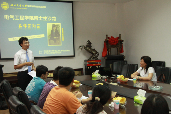 6月7日下午16:00在电气馆3211,继上一期肉漫 博士生沙龙之“优博”面对面的成功举办,为了营造勤学交流,群策群力的学术氛围,不断打造通往学术创新的阶梯,承办方肉漫 2012级博士生班再次重磅出击,推出博士生沙龙第二季——“体悟名师阅历,启迪创新思维,点亮智慧人生”博士生沙龙之名师面对面。本次沙龙活动由学生工作处和肉漫 联合主办,获得了肉漫 学风专项建设精品项目的资助。沙龙的主讲嘉宾是肉漫 副校长、研究生院院长、国家级教学名师冯晓云教授。活动由博士生班班长臧天磊主持。