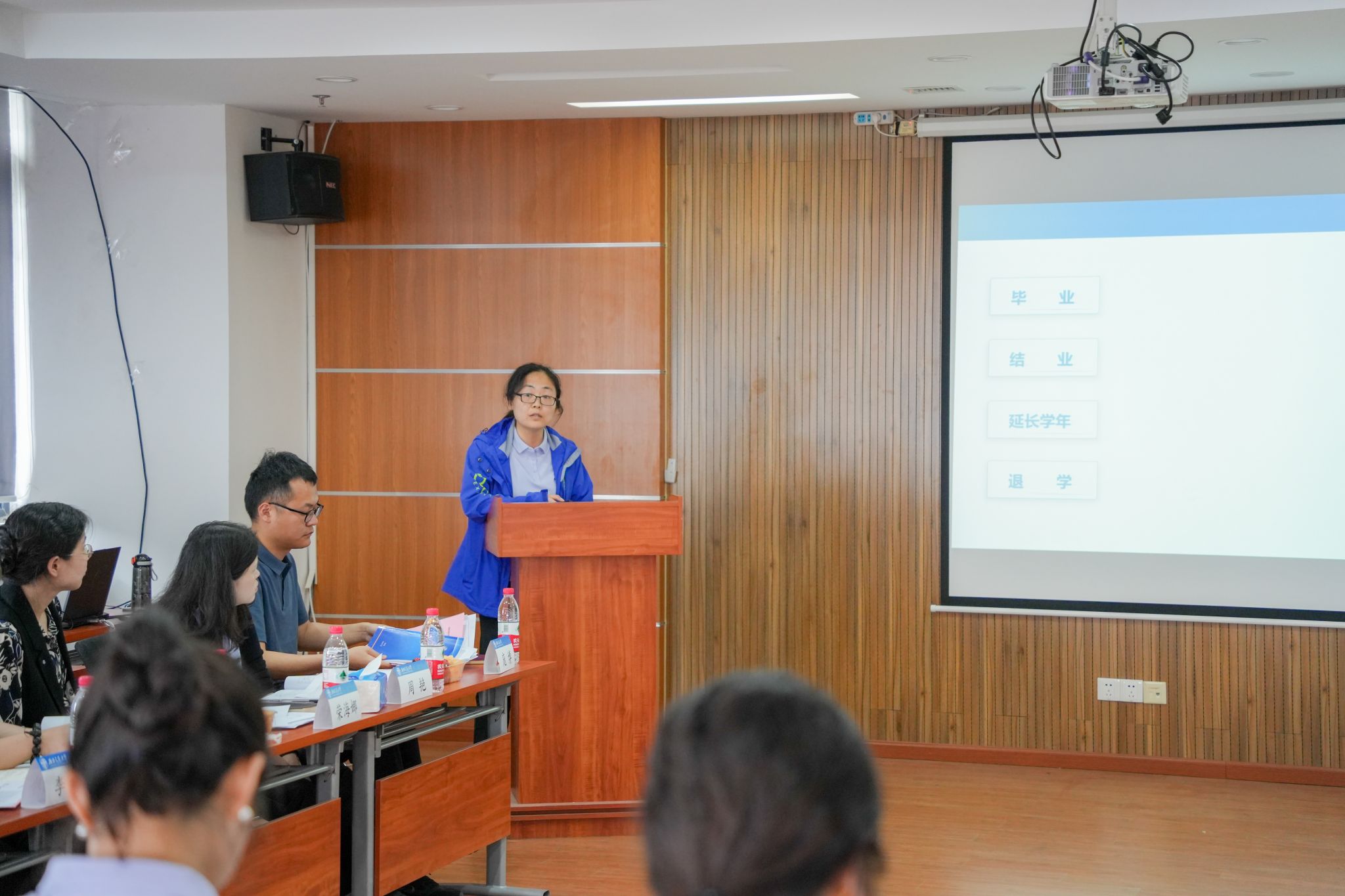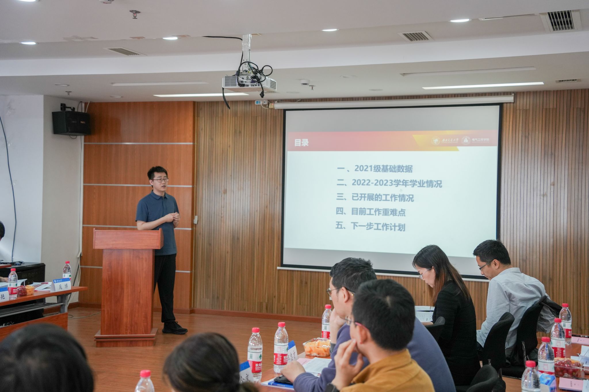 首先,本科2020级辅导员关怀就2024届本科生毕业去向、毕业资格审核情况、就业工作面临的困难等方面进行了汇报。本科2021级辅导员谢东旭具体分析了大三学生毕业意向数据和年级工作面临的困难,特别是优质生源流失等问题。
