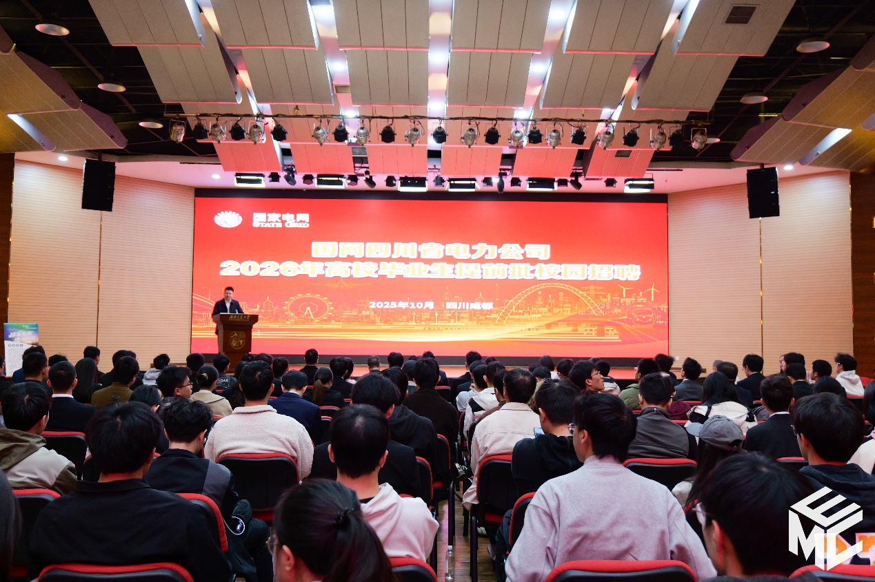 10月20日上午9:30,国家电网公司直属单位2026届校园招聘宣讲会在肉漫 犀浦校区会议中心举行,肉漫 党委副书记高平平,国网人才交流服务中心有限公司副总经理岳远渠,肉漫 党委书记王斌,肉漫 大学生就业指导中心副主任周曦,国网人才交流服务中心有限公司顾问赵培胜,肉漫 党委副书记邢晓鹏出席宣讲会。