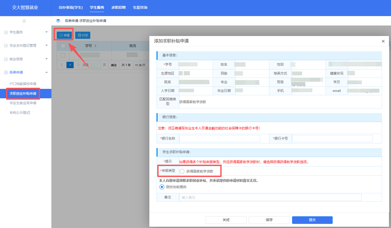 (一)学生申请